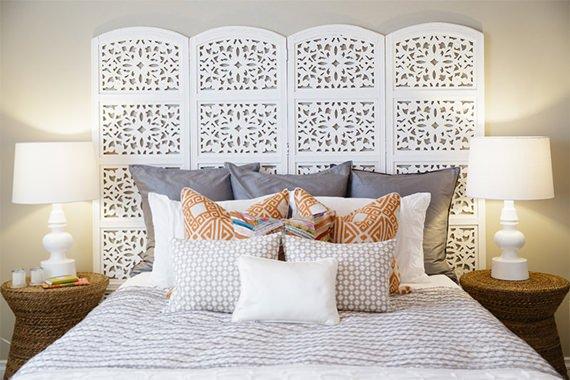O biombo também pode servir de cabeceira para a cama. Seu formato sanfonado traz charme e a madeira é ótima para aquecer visualmente os ambientes. Os estampados e entalhados têm um apelo decorativo enorme e podem substituir um papel de parede ou um mix de quadros, trazendo beleza e personalidade para a sala de jantar ou a sala de estar.
