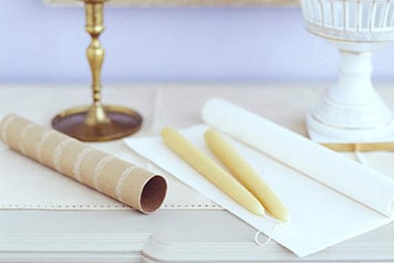 As velas podem ser embrulhadas com papel manteiga e logo em seguida envoltas com tubos de papel toalha. Uma forma fácil de agrupá-las e guardá-las na gaveta.
