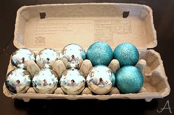 As bolas de Natal podem ser perfeitamente acomodadas em caixas de ovo. Cada caixinha destas é feita para proteger um conteúdo superdelicado, ou seja, seus enfeites estarão em boas mãos.