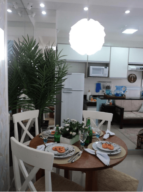 Para otimizar os espaços e fazer este lar crescer aos olhos dos moradores, a Ana optou por armários com portas de correr, cozinha integrada (tendência que não sai de moda!), espelhos e divisória de vidro incolor entre a cozinha e a área de serviço, para permitir a passagem da luminosidade entre os ambientes.