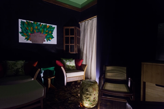 Ao todo são 5 ambientes decorados com muitos elementos da natureza, como móveis de madeira, folhagens e fibras naturais. O espaço mais intrigante deles é a Sala na Mata Suíte Casa, onde a arquiteta desafia os sentidos do visitante. Com apenas uma luz suave servindo de guia, o ambiente sensorial é recheado de cheiros e sons de mata, que convidam ao toque e à uma percepção mais aguçada do espaço e dos objetos. Aqui o “faça você mesma” marca presença em cabideiros de paredes customizados com portas de madeira e em mesas feitas de caixote.