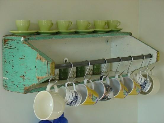 E a caixa de ferramentas de madeira, que ficou obsoleta e foi trocada por uma de metal com gavetas, mais compartimentos e outros atributos? Jogar no lixo nem pensar! Com uma demão de tinta ou um visual mais rústico como o da foto, ela pode ser pregada na parede e servir de prateleira para louças na cozinha. Lindo, lindo heart