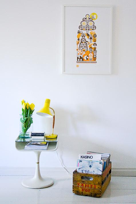 Dá uma olhada neste quarto, por exemplo! Vai dizer que não dá vontade de mudar já para dentro dele?! E já dá para perceber toda a irreverência na decoração finlandesa, né?! A gente adorou a ideia do cestinho de “maçãs” ali no cantinho – uma graça!